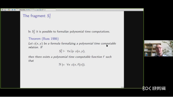 2021年5月18日下午4点, 逻辑与数学基础系列讲座第19讲由捷克科五楼自拍 数学研究所Pavel Pudlák教授线上主讲,报告题目是:“从皮亚诺算术到证明复杂性”。荷兰乌得勒支大学哲学系教授、荷兰皇家人文与科学五楼自拍 Albert Visser院士主持,新加坡国立大学数学系杨跃教授、比利时根特大学数学系Fedor Pakhomov博士担任与谈人。证明复杂性是与逻辑、计算复杂性和组合优化相关的一个快速增长的领域。报告伊始,Pavel Pudlák首先介绍了证明复杂性的起源和历史发展。它始于20世纪初Hilbert学派的研究,其目的是证明PA的完备性与一致性。20世纪30年代,哥德尔创造性的成果推翻了Hilbert学派的猜想,其成果主要有两个核心要点:一是对证明进行编码,二是构造了自指语句。20世纪70年代,伴随着计算复杂性理论的出现,人们的研究重点转向PA的片段子理论,并发现了其弱片段与复杂性类之间的联系。紧接着,报告对证明系统的基本概念做了介绍。一个证明系统可以是任何二元关系R(x,y)(y是x的一个证明),并满足以下性质:系统是可靠的;系统是完备的;二元关系在多项式时间算法中是可判定的。然后,Pavel Pudlák又介绍了来自组合优化的证明系统。 证明复杂性这一新兴领域的另一个推动力来源于此。 讲座的最后,Pavel Pudlák对证明复杂性这一研究领域做了总结。它不仅仅是对证明长度的研究,它包含了所有对弱形式系统及与可行性计算相关联的系统的研究。Pavel Pudlák用一个具体的例子演示了如何使用命题证明复杂性来证明一个独立性结果。