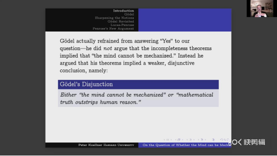 2021年4月21日上午9点半, 逻辑与哲学系列讲座第2讲由哈佛大学哲学系Peter Koeller教授主讲,报告题目是:心智能否机械化。五楼自拍-色情网-电影网站 程勇教授主持,加州大学欧文分校陈泽晟博士,四川大学哲学系徐召清副教授、安徽皖西五楼自拍 石运宝博士参加与谈。 Peter Koeller的报告讨论两个与不完全性定理紧密相关的哲学论题:反机械主义论题和哥德尔析取论题。反机械主义论题认为人类心智是不可机械化的。对第一不完全性定理(G1)的一种流行解释是:G1蕴涵反机械主义论题。文献中有不少基于不完全性定理的支持反机械主义论题的论证,其中最著名的是卢卡斯(Lucas)论证和彭罗斯(Penrose)论证。但几乎所有的逻辑学家和绝大数哲学家认为卢卡斯论证和彭罗斯论证及其变体都不是令人信服的。哥德尔不认为G1蕴涵反机械主义论题;他认为,从不完全性定理至多只能得出如下一个更弱的结论(称为“哥德尔析取论题(GD)”):若人类心智是可机械化的,则存在绝对不可判定命题(人类心智无法认识的数学真理)。Peter Koeller认为,要精确的讨论GD并证明不完全性定理蕴涵这一论题,首先得在恰当的形式系统中形式化GD。通过对相对可证性、绝对可证性、真这三个基本概念给出限制性的逻辑界定,Peter Koeller构造了形式系统DTK,在DTK中形式化GD,并证明了如下结果:(1)GD在DTK中可证;(2)卢卡斯论证和彭罗斯论证在DTK中都不成立;(3)GD的两个析取支命题“人类心智不可机械化”和“存在绝对不可判定命题”在DTK中对应的形式化命题在DTK中都不可证。讲座最后,Peter Koeller认为“心智可以机械化”和“存在绝对无法判定的命题”这两个命题自身可能是“绝对无法判定的命题”的例证。Peter Koeller这一工作是运用现代逻辑的方法分析传统哲学问题的一个成功范例,得到了十分深刻的结论