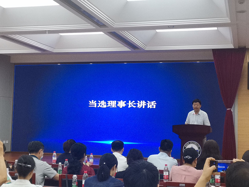 新任理事长钟年教授致辞,他对新一届理事会的工作做出了重点规划,提出湖北省社会心理学会的发展,不仅要靠各界的人才,还要靠健全的章程,要稳步前进,积跬步以致千里。