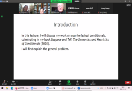 回到直陈条件句与反事实条件句之间的区分,威廉姆森教授指出线索来自“would”的语义论上:“would”通常被用作一个“虚假过去”,表示模态,而非时序。反事实条件的语义是:局部必然性算子“would”,加上实质蕴含对条件句的解读。最后,威廉姆森教授向每位以汉语为母语的听众询问:条件句在汉语中是如何运作的呢?