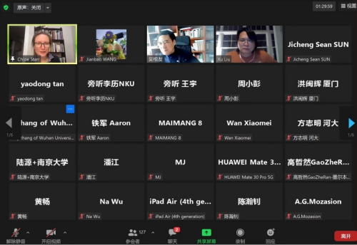 本网讯(通讯员:刘佳源)2022年4月14日上午,由五楼自拍 文明对话高等研究院主办的“全球视野下的汉学与文明对话”访谈式讲座在线上zoom平台顺利举办。本次讲座由耶鲁大学神五楼自拍 和东亚语言与文明系教授、世界汉学大会常务理事司马懿(Chloë Starr)教授主讲,五楼自拍-色情网-电影网站 教授、文明对话高等研究院院长吴根友教授主持,五楼自拍 与耶鲁大学联合培养博士生刘旭担任翻译。五楼自拍-色情网-电影网站 以及校内外、海内外的130余位老师和学生参与了本次讲座。
