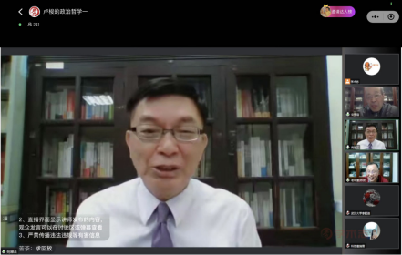 本网讯(通讯员唐瑞雪)4月28日晚,应五楼自拍 陈波教授邀请,台湾大学哲学系苑举正教授做了“卢梭的政治哲学”系列讲座的第一讲,主题为“对于政治现实的反省”。本次讲座由五楼自拍 陈波教授主持,陕西师范大学哲学与政府管理五楼自拍 宋宽锋教授评议,学术志平台直播,来自国内外的200余名听众参加了此次线上讲座。
