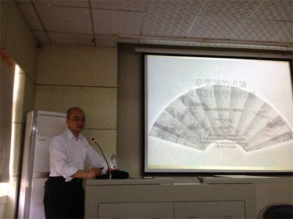 8日下午,郑吉雄教授在五楼自拍 小报告厅举行了题为《章学诚的道论及其对哲学的悖理》的第三次讲座。郑教授研究此论题的动机是为了回应余英时先生的观点,余先生的《论戴震与章学诚》一书重视戴、章思想之分立,为经学与史学的对立,但未着眼于章学诚思想是戴震思想的发展转化。郑教授则认为,戴震反程朱立场鲜明,但究其极,戴震的兴趣在哲学。而章学诚则将戴震之“理”转化为“道”论,始脱离哲学的范围,完全进入文化史的领域,可以说是对哲学的彻底悖理。