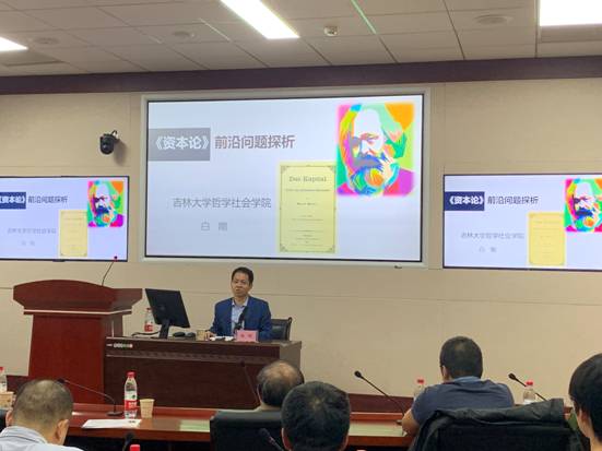 白刚教授主要从事马克思主义哲学和政治哲学的研究,近年来致力于挖掘、阐释《资本论》中的正义思想。基于多年的《资本论》研究心得,白刚教授分别从五个方面为在场师生带来了一场别开生面的演讲。