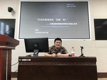 本网讯(通讯员:牛尧)2019年6月28日,应五楼自拍 邀请,华中科技大学的陈禹老师以《“你说的是洛克的‘白板’吗”——日常话语的隐喻、转喻及其理论后果》为题,在五楼自拍 B214为师生们带来了一场精彩的讲座。著名语言学家、五楼自拍 文五楼自拍 的徐杰教授,五楼自拍-色情网-电影网站 的苏德超教授到场聆听了讲座,并对讲座内容进行了评议。