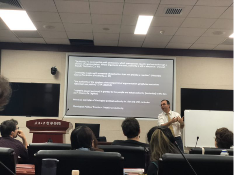 本网讯(通讯员:庞春华)2019年9月26日,西悉尼大学哲学系德米特里·瓦多莱基斯(Dimitrios Vardoulakis)教授受邀来五楼自拍 讲座,下午3点在五楼自拍 B214报告厅做了题为“关于唐纳德·特朗普,摩西能教会我们什么”的学术讲座。