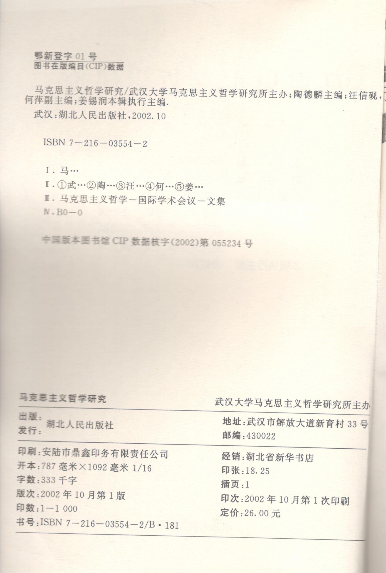 《马克思主义哲学研究》(2002年)