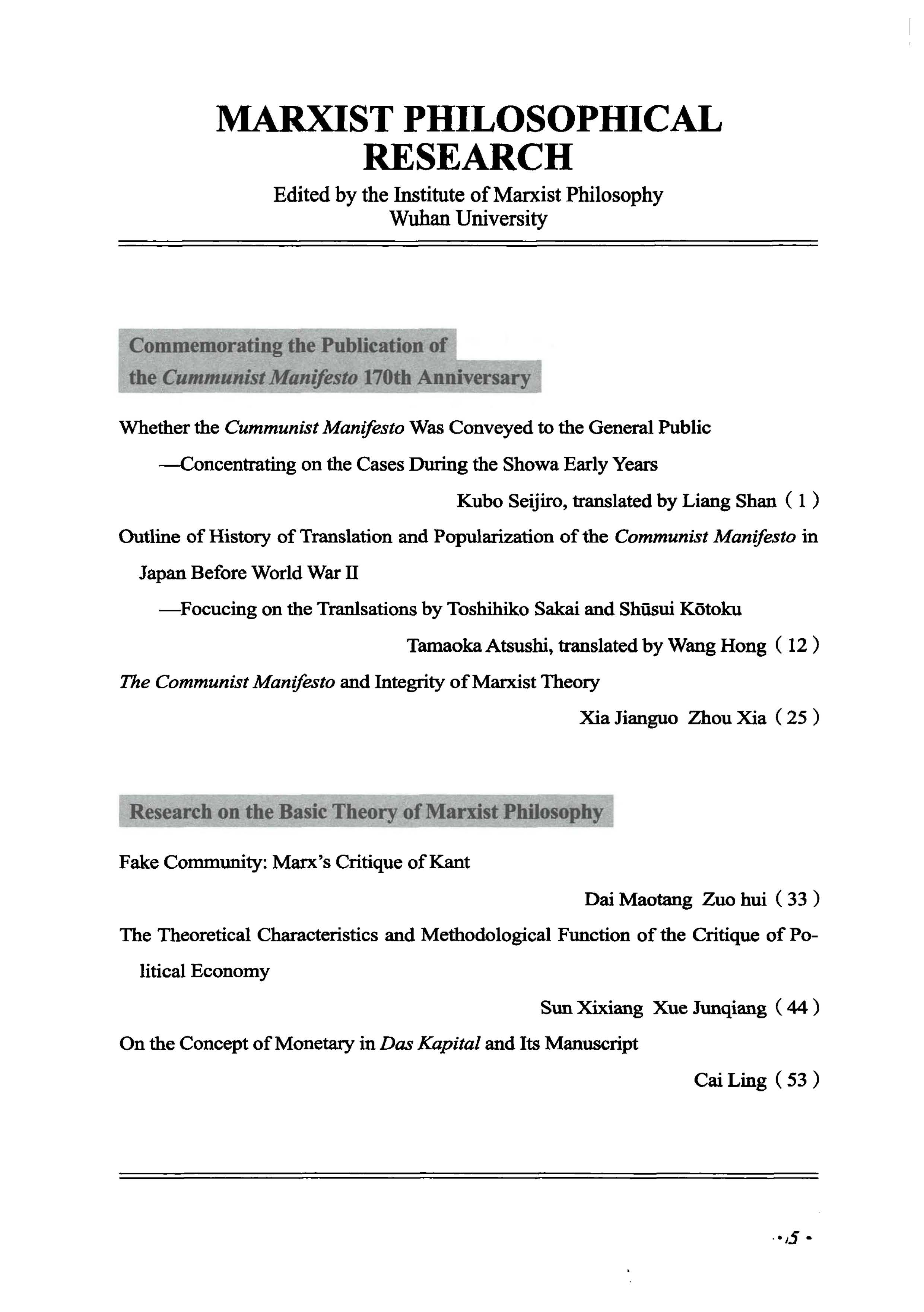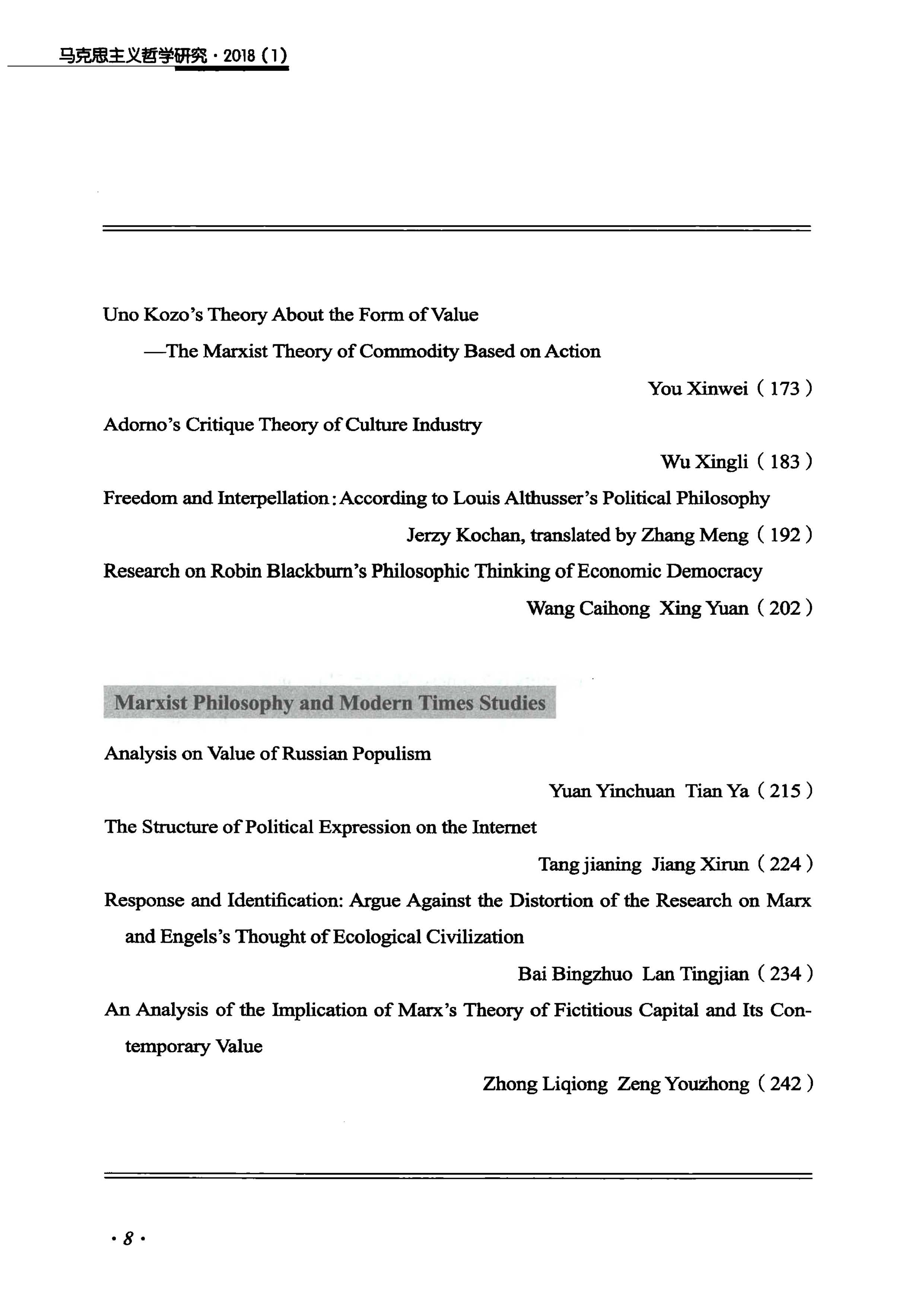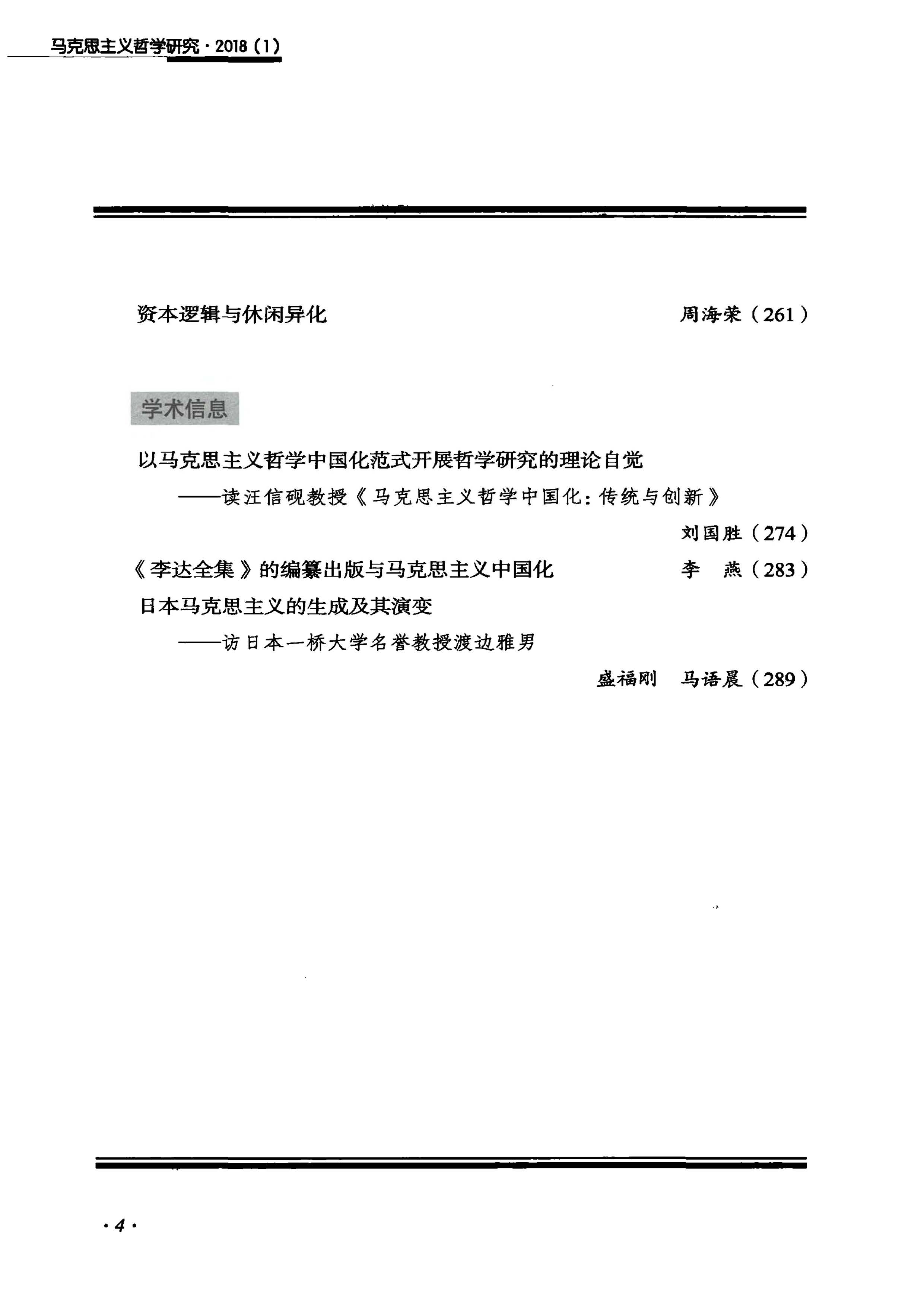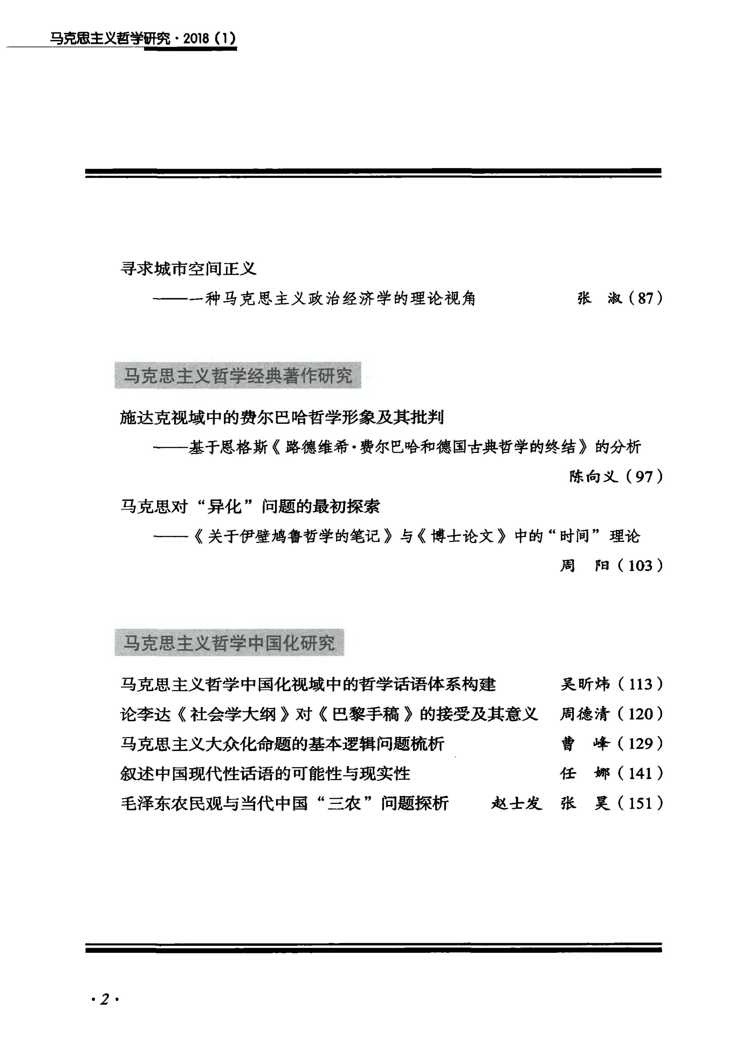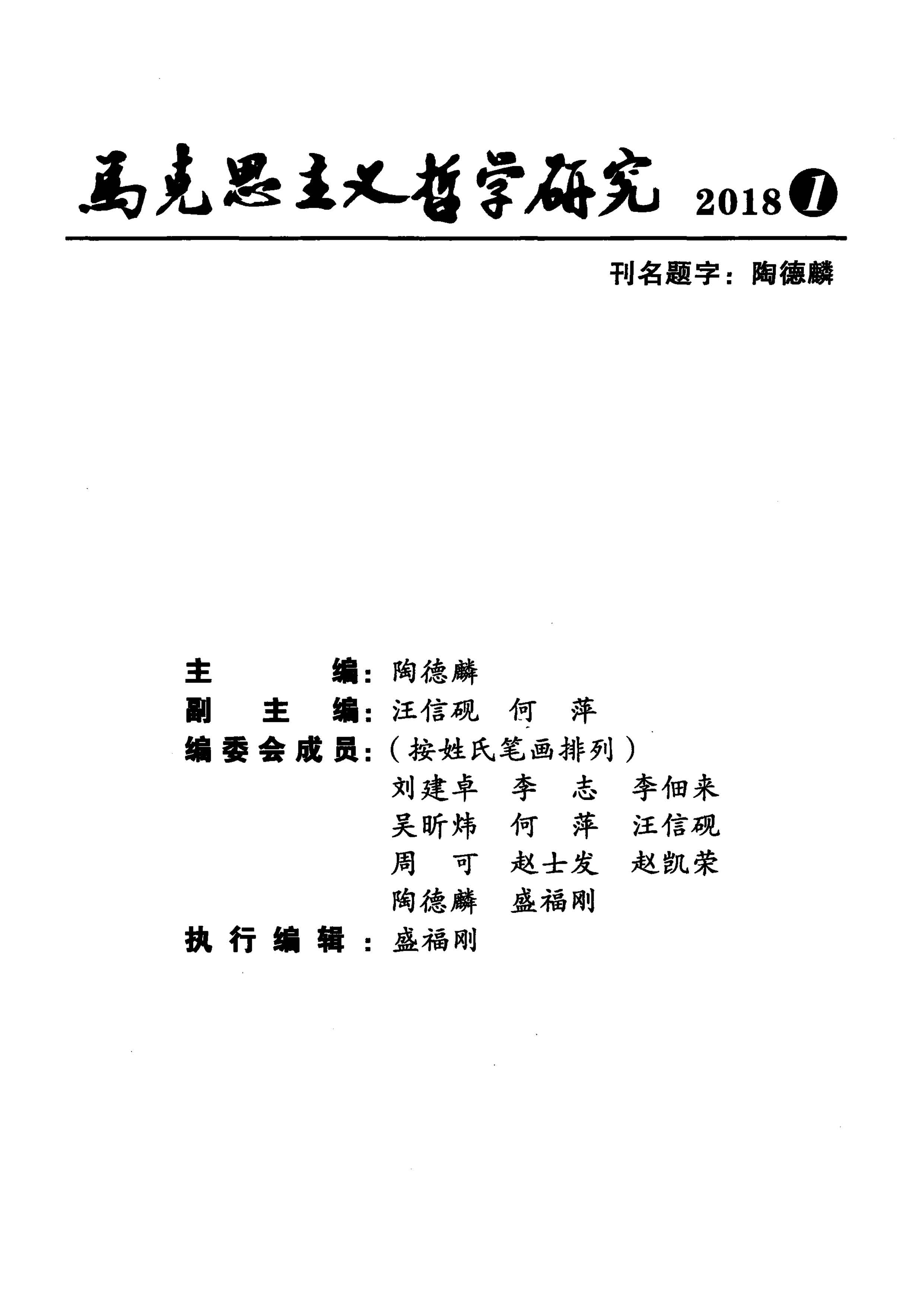 《马克思主义哲学研究》(2018年第1期)
