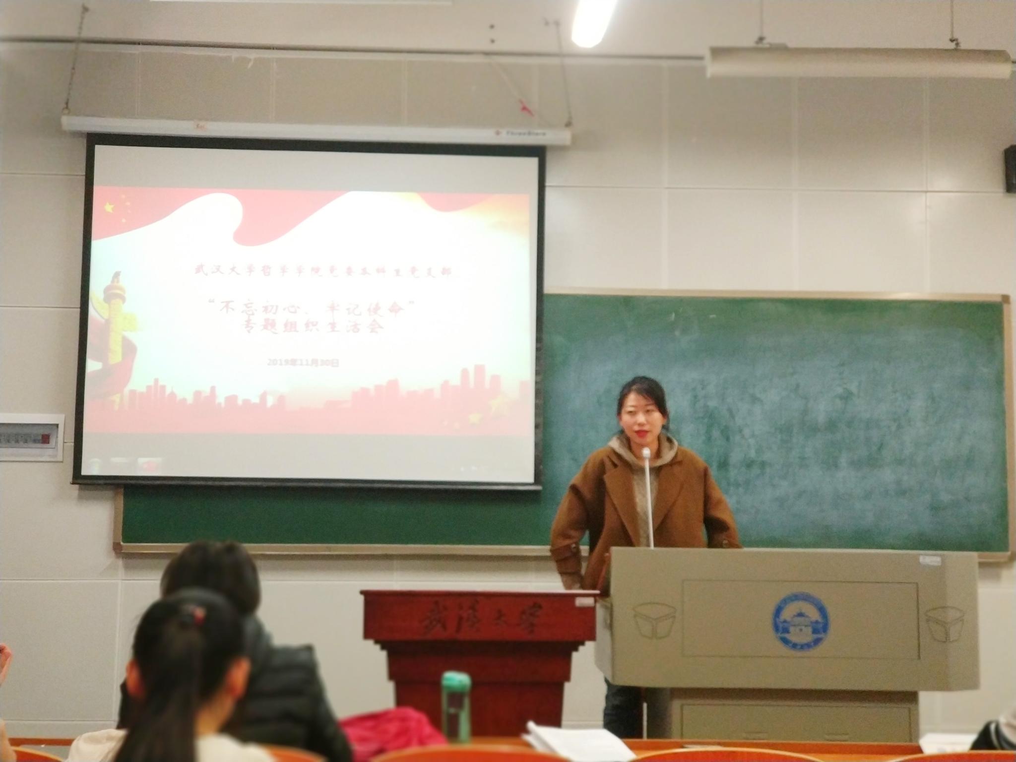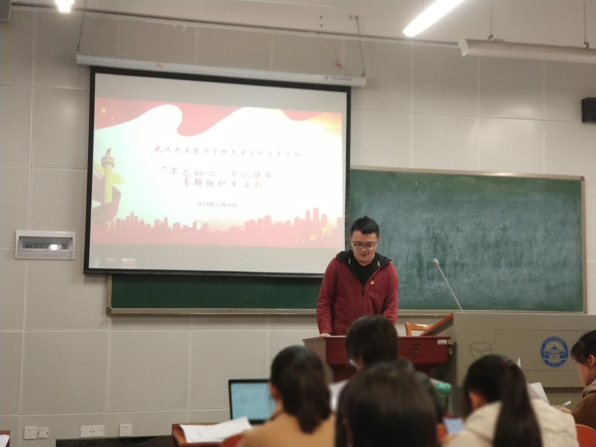 本网讯(通讯员:王雪琦)根据“不忘初心、牢记使命”主题教育工作的具体部署,加强党员初心意识,鞭策党员牢记使命,2019年11月30日下午17:25,五楼自拍 本科生党支部在教五楼108教室开展专题组织生活会和民主评议会。党支部督导、五楼自拍 党委副书记严璨全程参与会议。会议由支部书记胡楷昀主持。