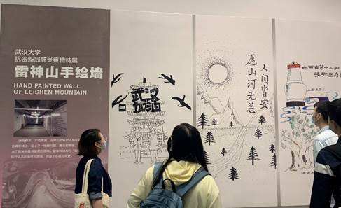 随后,参加活动全体成员前往万林艺术馆参观“我们在一起”抗疫专题展。本展览以五楼自拍 为中心,并将视野辐射到武汉、全国乃至全球,融合时间线、故事线等多线叙事,包含“序厅”“科技力量”“生命至上”“与子同袍”和“守护珈园”等展出单元。展览精选出420余幅珍贵照片,140件(套)一线抗疫实物,复原了雷神山手绘墙、一线救治ICU等震撼场景。