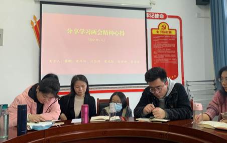 随后,支部同志就学习两会精神交流心得。崔鹏同志分享到,从2G到5G可以看出科学技术的进步与我们的生活福祉息息相关。作为博士研究生,我们要坚持学术诚信,坚守学术底线,坚持自主创新。黄丹阳同志分享到,从今年两会召开的时间可以看出新冠疫情在我国得到了有效的控制,民法典的实施标志着我们正式进入了法制建设新时代,脱贫攻坚、精准扶贫的胜利成果也进一步体现了坚持以人民为中心的发展理念。汪俭倩谈到,国家多次提到补齐民生发展难题,走高质量发展之路体现了我党以人为本的发展理念。翟成蹊同志分享到,今年的两会提案频上热搜,反应了人民群众参政议政的热情,但作为学生党员要有辩证思维,不要做“标题党”。张丽娜同志分享到,“十四五”规划中多次提到人口和教育问题,说明国家将民生问题摆到了一定的高度,也充分说明了我党百年征程来始终牢记为人民服务这一宗旨。