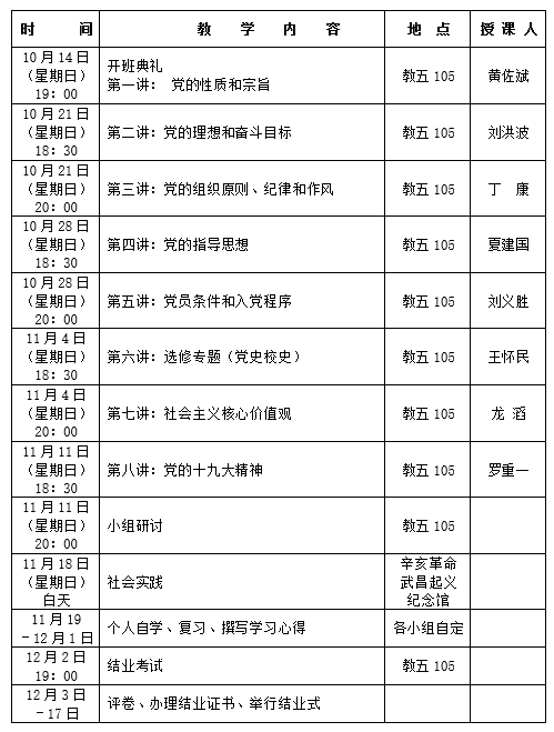 【党建工作】第62期学生入党积极分子培训班第一分党校课程安排表