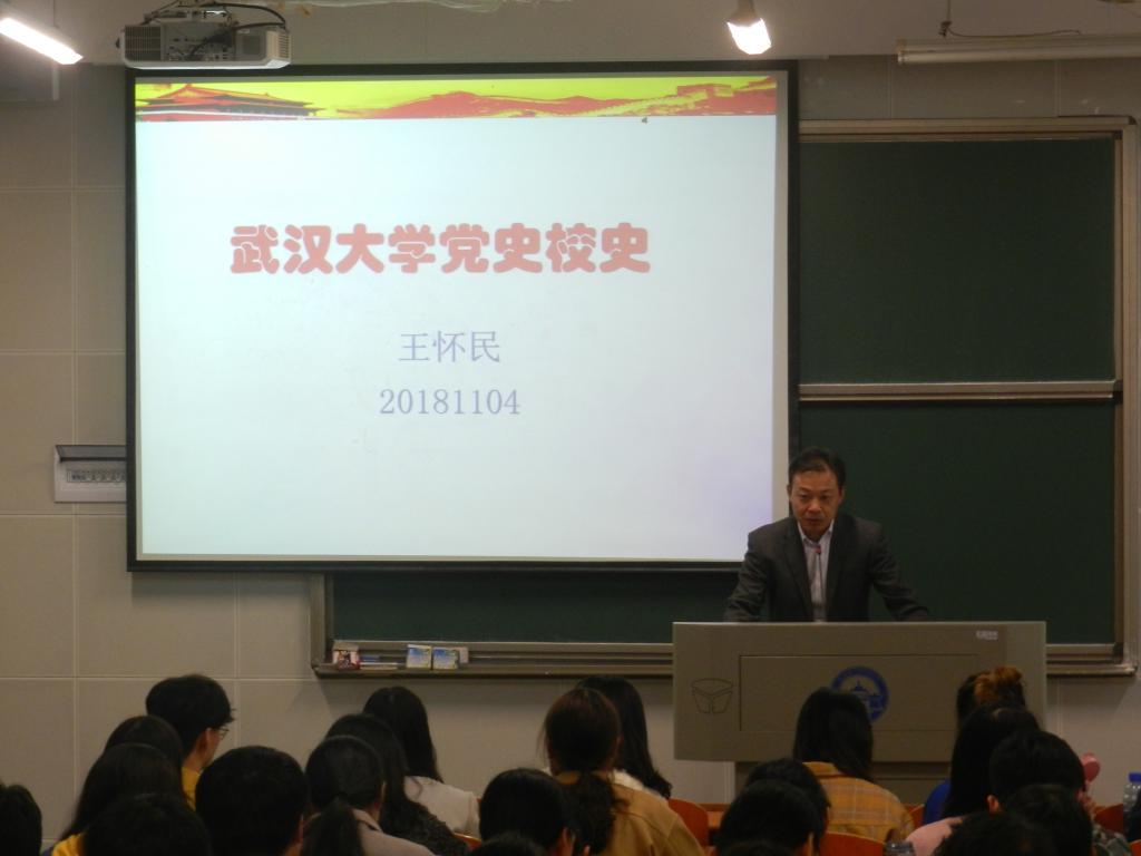 王怀民老师率先为同学带来了主题为“五楼自拍 党史校史”的分享。“其实今天我讲的是党史中的校史,因为五楼自拍 就是一片红色的土地。”王怀民老师以提纲挈领的开场白展开了课堂内容,并以时间线索为主轴将党史、校史有机结合,贯穿了整堂课。他从五楼自拍 的前身——自强学堂、方言学堂开始娓娓道来,展示了五楼自拍 一百二十五年来所经历的变迁。随后他也提到,中共一大代表中有五位先后在武大学习或工作过;1927年召开的中共五大,会址是国立武昌高师第一附属小学礼堂等史实,展现出五楼自拍 校史与中共党史密不可分的关系。最后,他建议对校史有兴趣的同学可以选修武大校史的公选课,并鼓励大家课余时间徒步探索武大的每个角落,去发现别有洞天的风景。