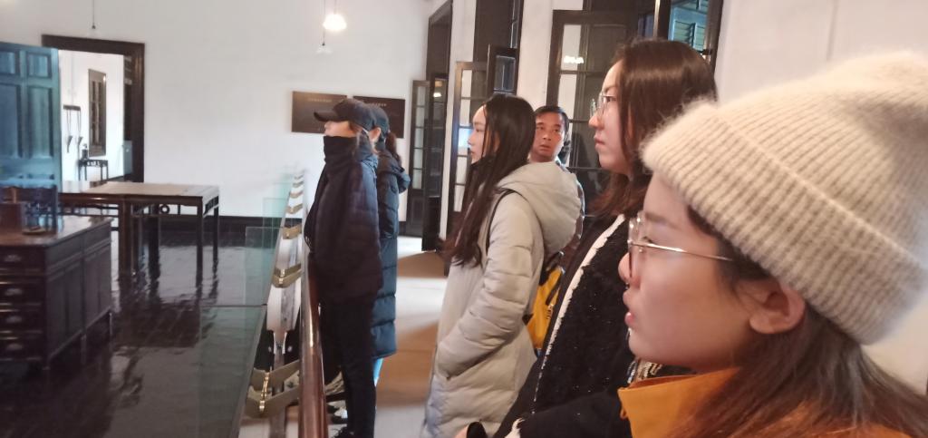 步入展厅,跟随着讲解员的步伐和讲解,学员们依次参观了革命礼堂、会场旧址和烈士遗物等珍贵的展品。纪念馆所呈现的内容涵盖了文物珍藏、史迹资料、影像资料等,全方位地展示了辛亥革命发生的背景与深远影响。参观的学员们时而侧耳凝听,时而蹙眉深思,时而驻足拍照,展厅中弥漫着严肃而深沉的气氛。最后当解说员走向展厅的尽头,她鼓励所有人回望历史,开创未来,继承和发扬先烈的优秀革命传统,为中国特色社会主义新时代续写新的篇章,学员们也都纷纷作出了坚毅的回应。