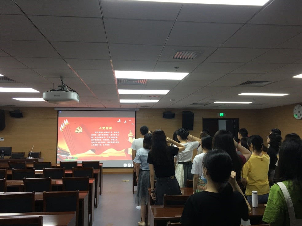 在圆满完成预备党员转正工作后,为进一步激发广大党员的荣誉感、责任感和使命感,激励、强化新老党员积极投身于党和国家建设事业的党性修养,本科生党支部进行了庄严的新党员入党宣誓仪式,老党员们也一同重温入党誓词,永葆入党初心,以誓词为镜,审视自身,强化责任和担当。每一位党员面对鲜红党旗,右手握拳,一字一句许下铮铮誓言。