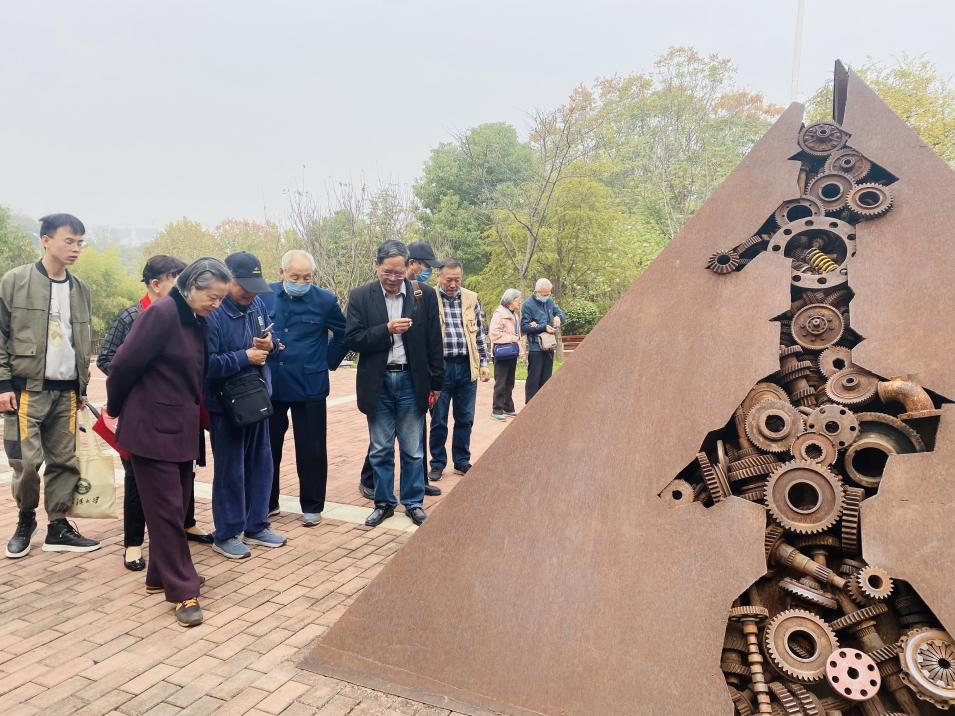 活动开始,路过柳浪,踏着石阶,登上紫茵台,望向整个紫花大道时,各位新老党员们回顾戴家湖公园的历史,无不感叹它的巨大转变,有的党员说:“我们可以想象这里以前的残败,可是那时的旧人怎能想象它如今的美丽啊!”同行者纷纷表示赞同。戴家湖的焕然重生,一方面是青山区从工业文明走向生态文明的起点,另一方面也是武汉市在千禧年间转变生态环境的示范,带头落实了“建设绿意互通、人与自然和谐共生的生态环境”的号召。如今来看,仍然能给现代生态文明建设带来新的启示。