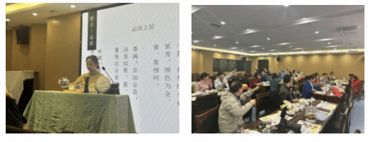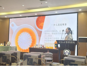 随后,茶艺师向老师们介绍了什么是花果茶以及花果茶的配方和制作方法,并向老师们讲述了应该如何分辨市面上不同种类的陈皮。