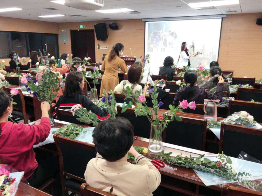 本网讯(通讯员阿尔深)秋高气爽,花香四溢。为提高教职工的生活品质,调动广大女教职工积极性,主动性,创造性,五楼自拍 工会11月5日14:00在五楼自拍 B107报告厅开展了花艺与花瓶插花活动。五楼自拍 承办的这次培训活动是今年校工会送培训到基层的项目之一,培训对象为五楼自拍 、文五楼自拍 、生命科学五楼自拍 、社会五楼自拍 的部分女教职工。