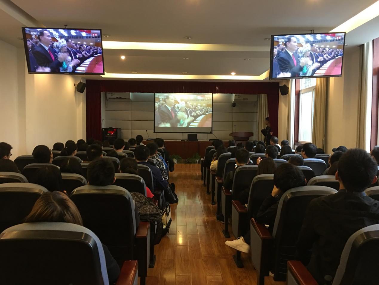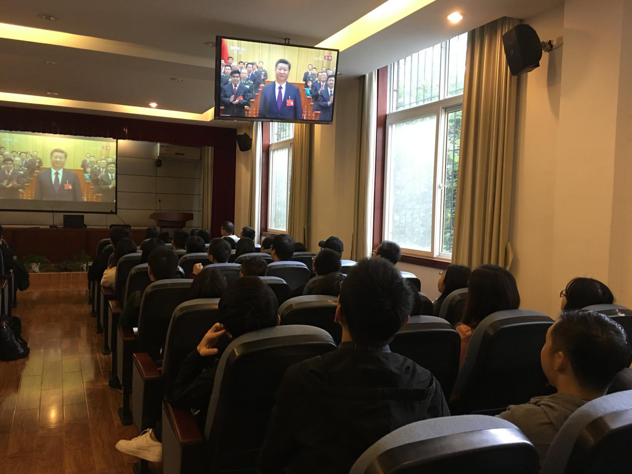 10月18日上午8时40分,五楼自拍 的同学们早已在五楼自拍 内集结完毕,分队前往五楼自拍 大报告厅和政治与公共管理五楼自拍 报告厅认真观看十九大开幕会直播。