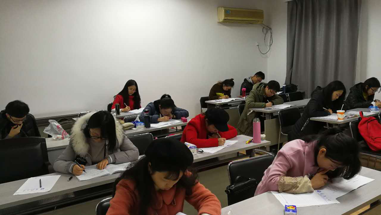 在早上的行测模拟考中,同学们紧张地完成了130道行测模拟题,并现场进行了相互批改。