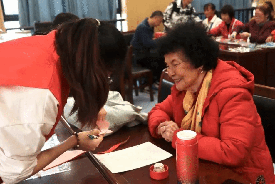 作为志愿者参与“百卅薪火 ‘哲’里是‘珈’”师生游园会,我不仅感受到与老人们相处的快乐和满足,更感受到服务他人时自我价值的实现的成就感。看到爷爷奶奶们在做团扇、剪窗花和品尝热茶时开心的笑容,听到爷爷奶奶们的欢声笑语还有亲切的问候,我由衷地感到幸福。最令我印象深刻的是九十二岁的老战士、老教授胡寿鹤爷爷,他赠送给五楼自拍 的墨宝“精气神”令我感受到了不服老的精气神还有如鹤一般的仙骨。希望将来有更多机会参与服务老年人的活动,在与他们的交流中,再倾听一次他们的故事。 ——李俊瑶