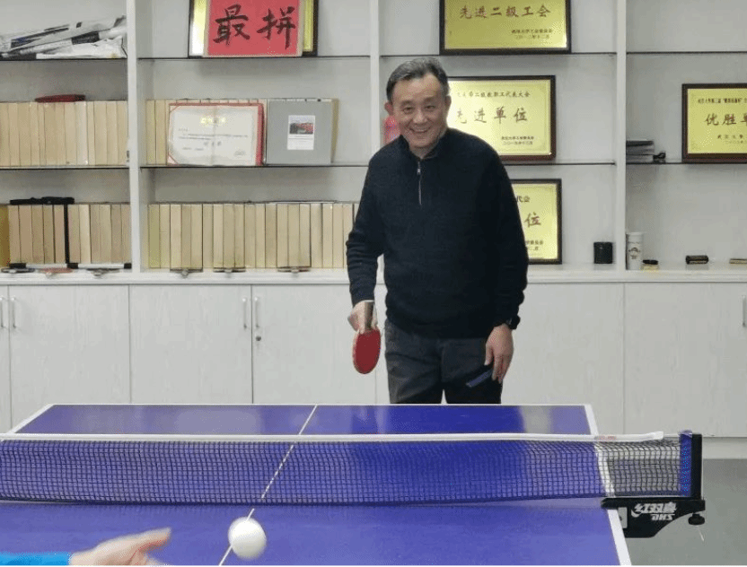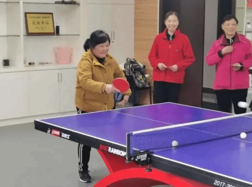 分会场乒乓球室是本次活动的球类运动区。老教师们在志愿者的引导下,以“孝心养肺健身操”为热身活动。简单热身后,老教师们走到球桌前,挥动球拍开始酣战,乒乓球室内欢呼声阵阵,志愿者与师生轮番上阵,享受运动的乐趣。