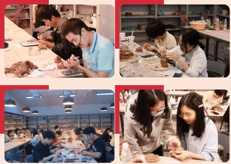 理论学习结束后,同学们迫不及待地进入了实践操作环节。他们以团小组为单位,在陶艺社成员的指导帮助下开始了陶艺制作。同学们充分发挥创意和想象力,有的选择传统造型进行细致雕琢,注重细节和比例的把握;有的则大胆创新设计独特艺术品。制作过程中,同学们互帮互助、共同探讨,不仅提升了陶艺技能,也增进了彼此之间的友谊。经过几个小时的精心制作,一件件精美的陶艺作品逐渐呈现在大家面前。