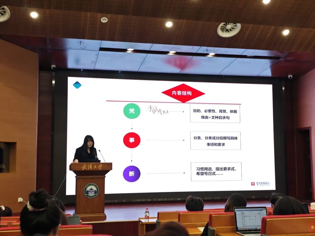 培训讲座围绕公文撰写基础与规范、公文撰写技巧与提升、公文撰写常见问题与解决策略,以及实战案例分析等四大板块展开。活动伊始,廖婉婷老师以表格的形式,直观地展示了公文写作题目在相关考试中和日常学习工作的出现频次,在场学生无不深刻体会到了提高公文写作能力的重要性。