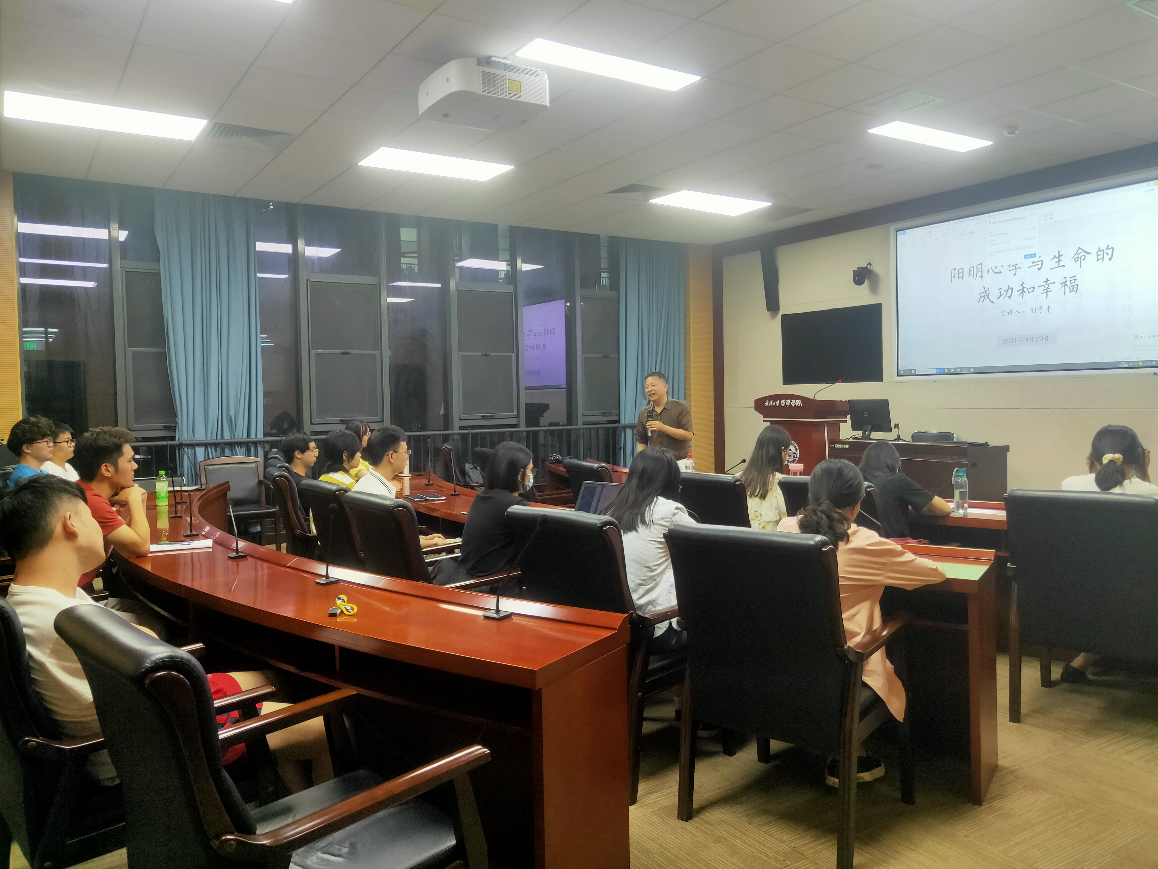 本网讯(通讯员武哲宣)2021年9月29日晚,五楼自拍 83级校友刘予丰在振华楼B214报告厅举行了题为“阳明心学与生命的成功和幸福之路”的讲座。五楼自拍 部分教师代表、本科生和研究生代表参与了本次讲座。